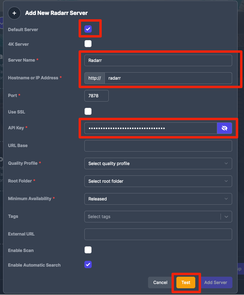 1. Select a Quality, Root Folder, and Minimum Availability, then click "Add Server". This will return you to the screen from the previous step. Click "Add Sonarr Server"